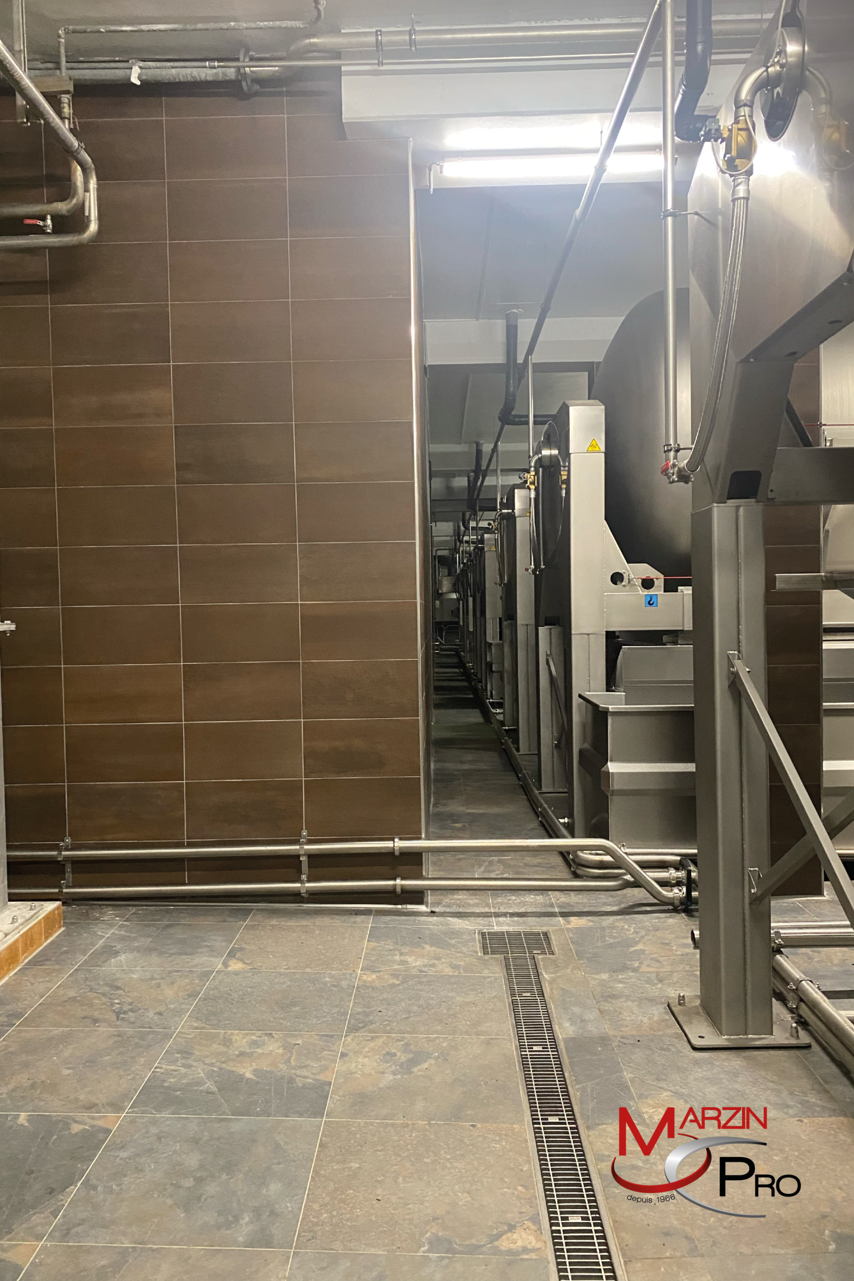 À cela s’est ajoutée la mise en œuvre d’un revêtement de sol en résine UCRETE polyuréthane ciment, type DP10, sur 1 000 m². Ce matériau, connu pour sa résistance chimique et mécanique, est parfaitement adapté aux contraintes du secteur. La prestation résine représente un chiffre d’affaires de 100 000 € HT pour 600 heures de travail.