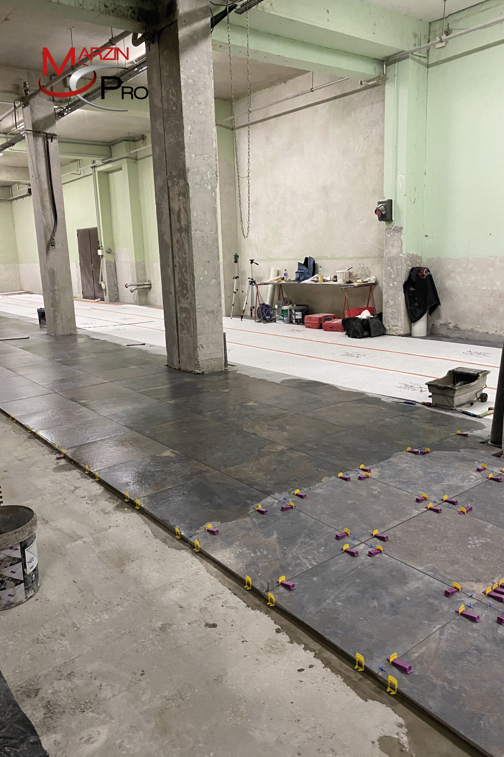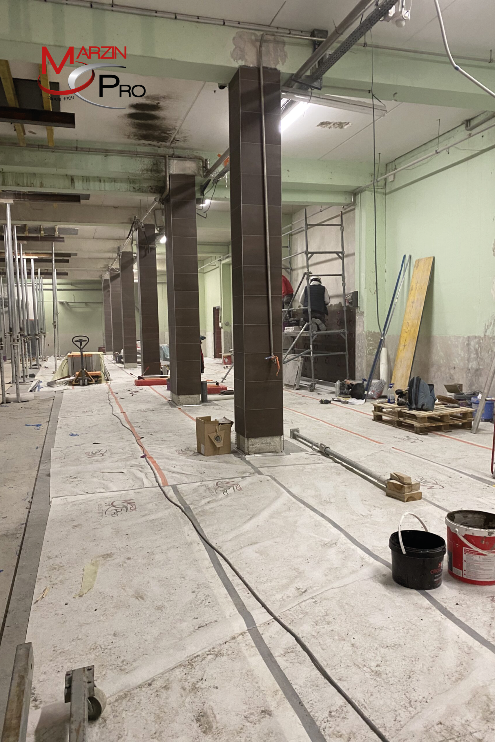 Le lot carrelage, de son côté, représente 450 000 € HT pour environ 3 800 heures de travaux. L’effectif moyen mobilisé sur le chantier était de 10 personnes.