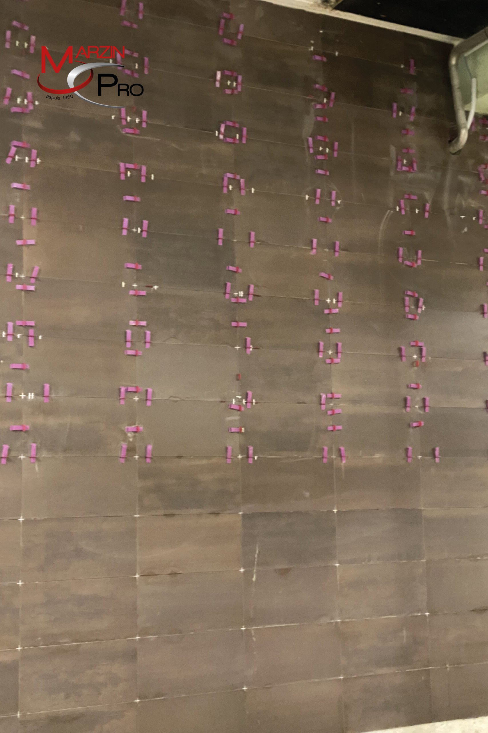 Les murs de la cuverie ont également été traités avec un carrelage collé en grès cérame 600 x 300 x 9 mm, pour une surface totale de 700 m².