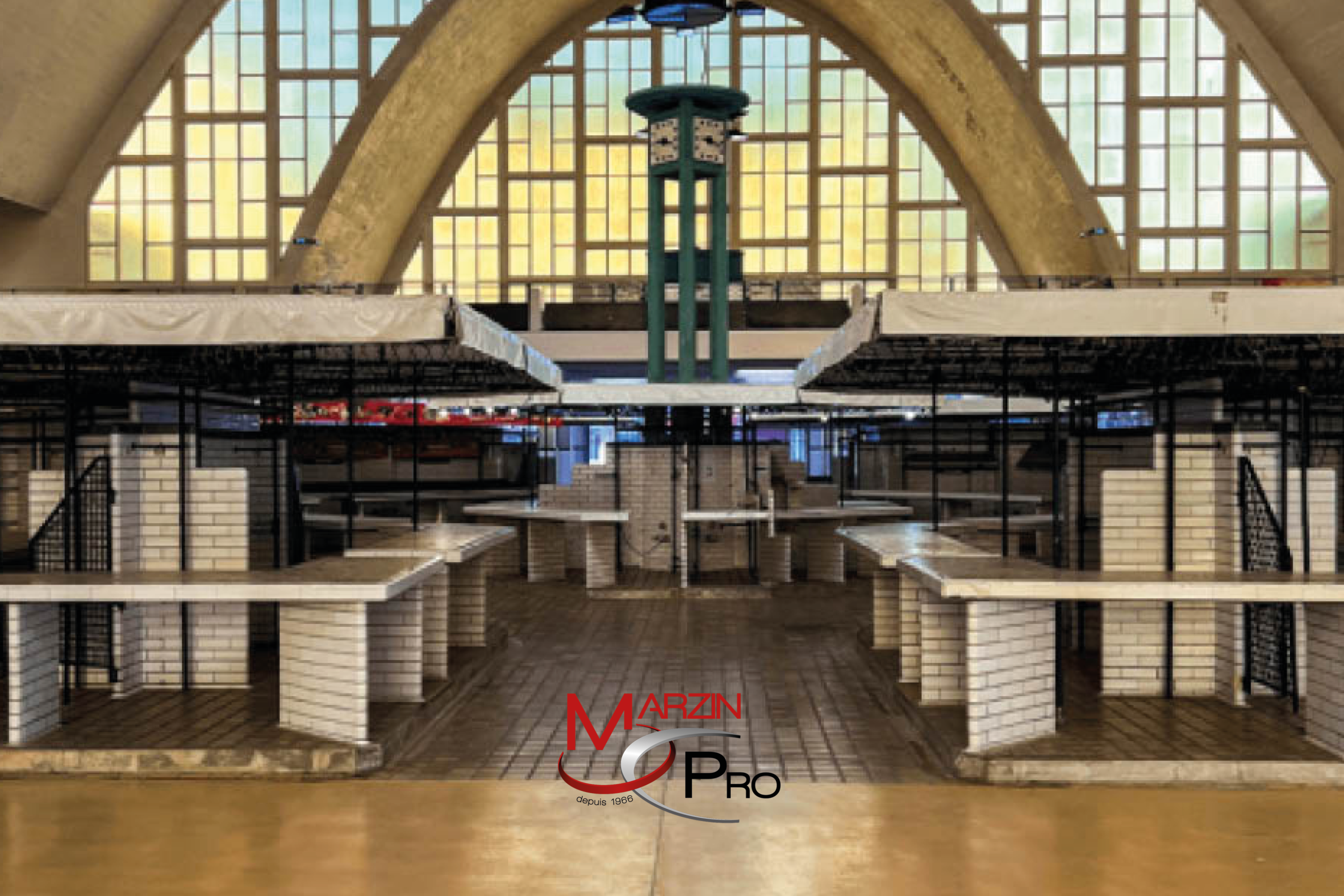 Marzinpro a participé à un chantier emblématique : la restauration des Halles Centrales du Boulingrin, lieu classé et symbole du patrimoine architectural de la ville de Reims. Ce projet d’envergure visait à restaurer les étals historiques tout en respectant les exigences techniques et esthétiques liées à ce site protégé.